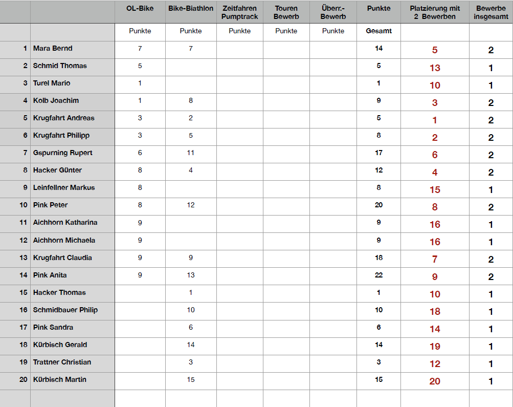 Ergebniss Orientierungsbike: